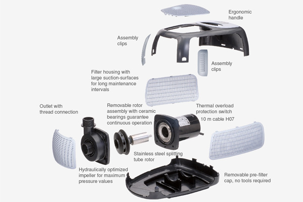 A továbbfejlesztett Power-X technológia gazdaságos megoldást nyújt szökőkút működtetésére és patak, vagy vízesés táplálására. Alkalmazásával alacsony fogyasztás mellett nagyobb vízszállítás lehetséges. Energiatakarékos megoldás. A kerámia csapágyak lehetővé teszik a hosszú távú folyamatos működést. A szivattyú beépített túlmelegedés elleni védelemmel rendelkezik.